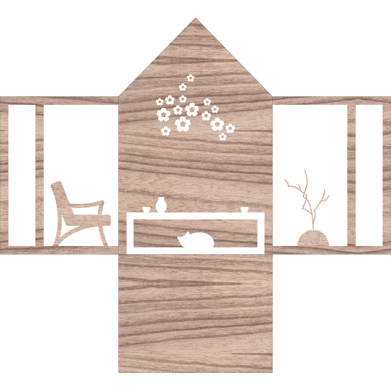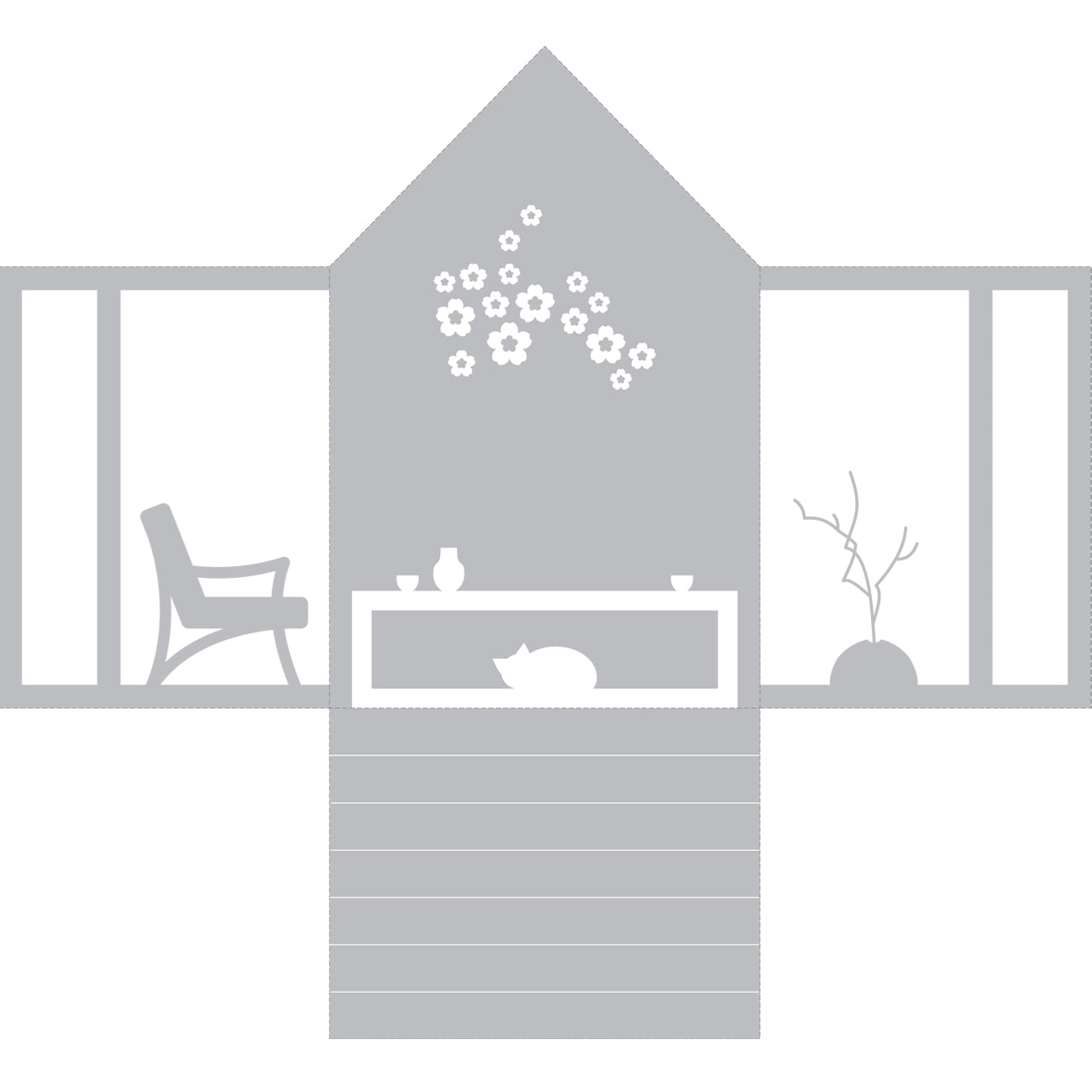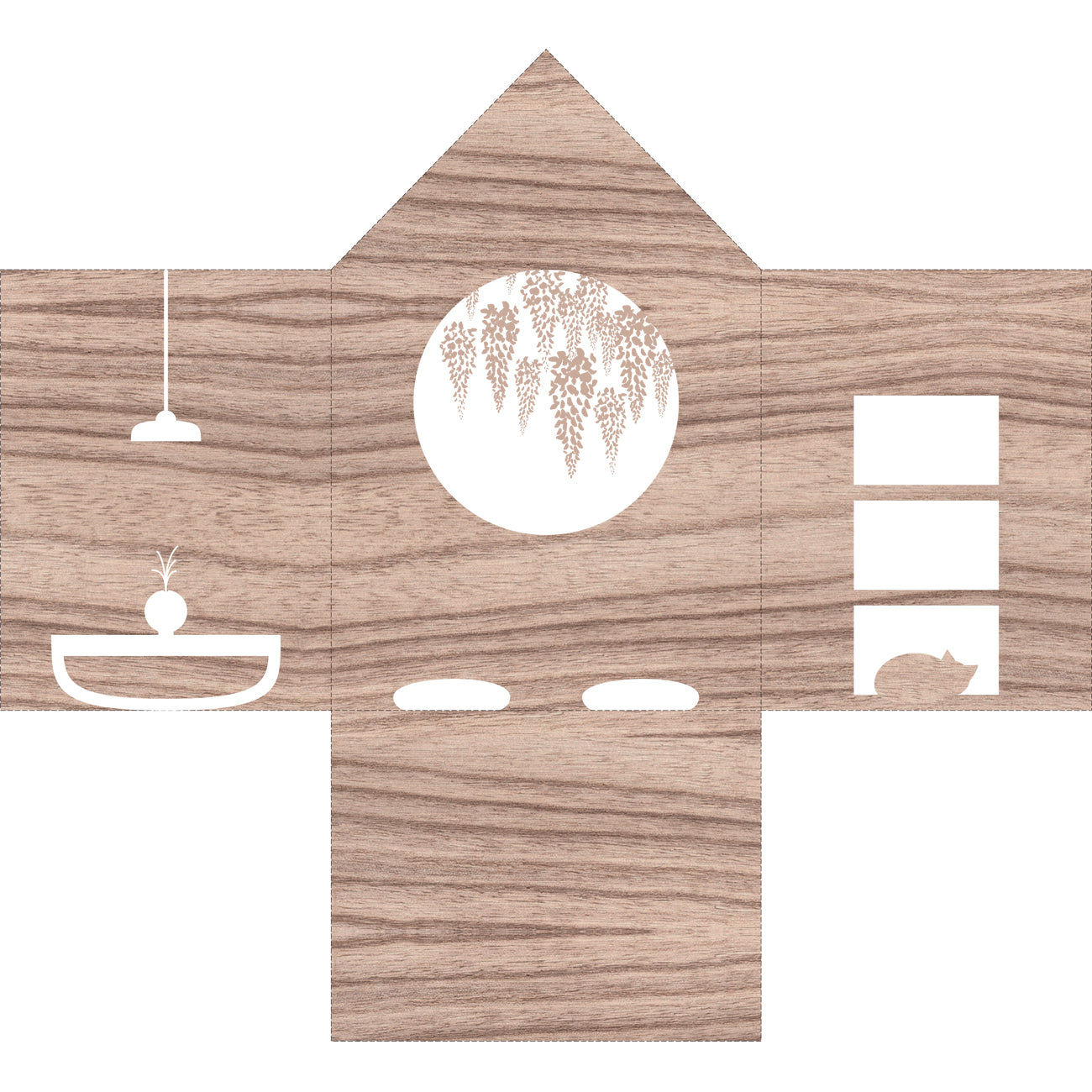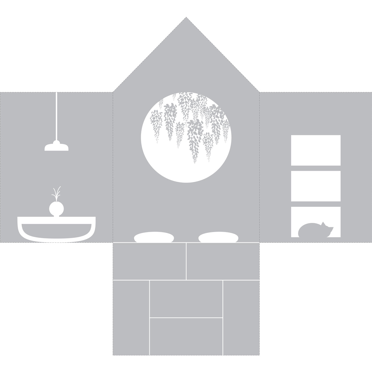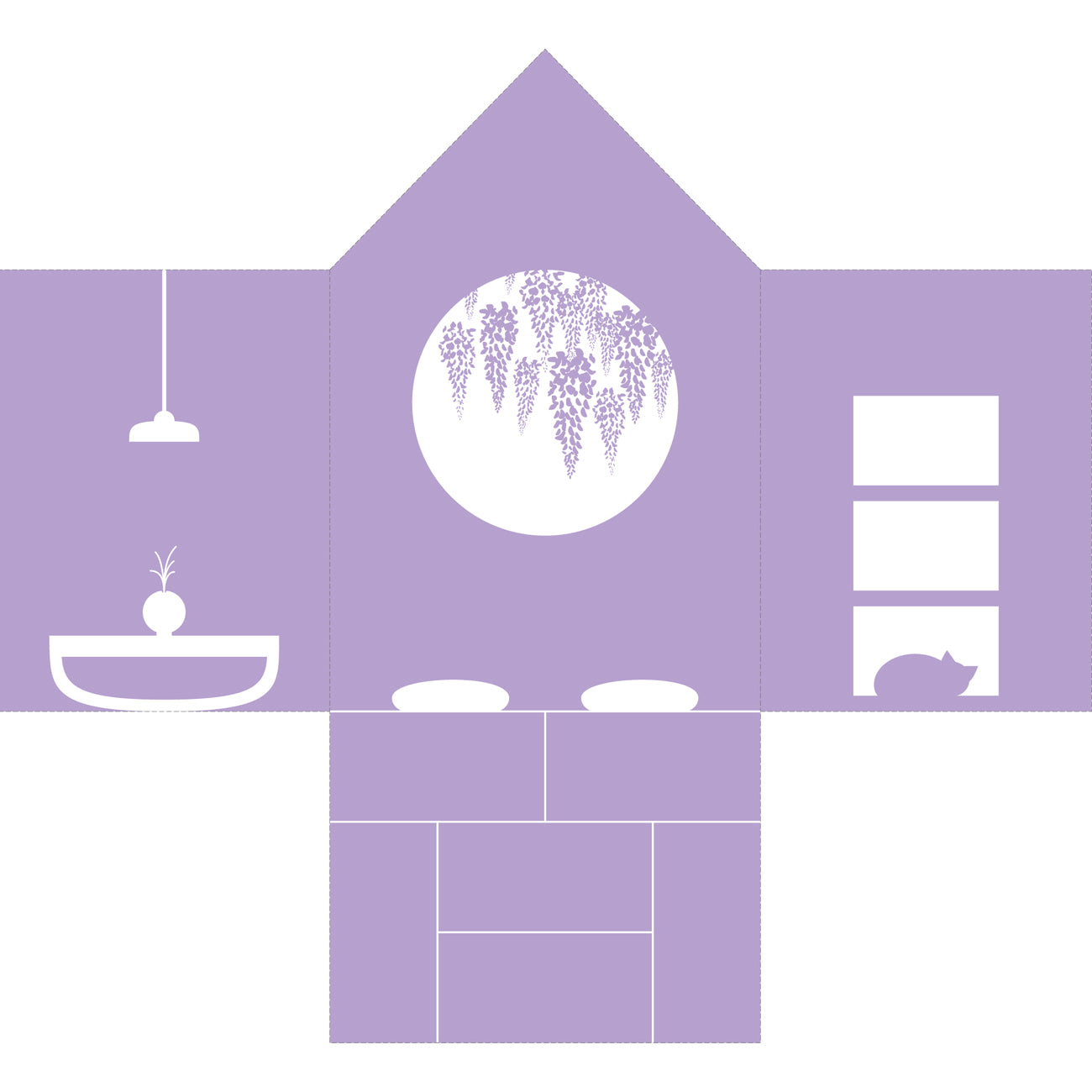 Print the background on a A4 sheet of paper, cut it out and put it into the house by folding the left, right and bottom sides (along the marked lines).