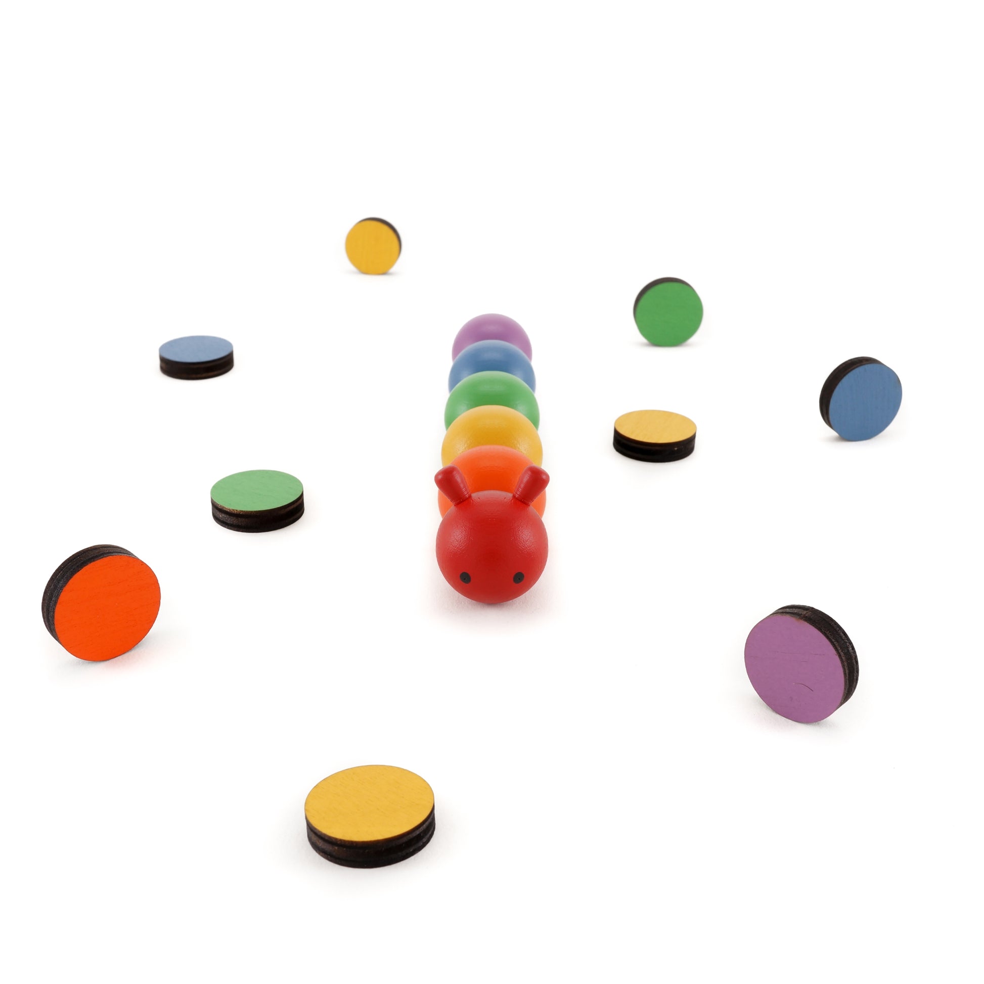 Your objective is simple yet challenging: clear your caterpillar by matching the color order of the chips on your playboard to the color order of the drawn magnetic balls. With each turn, you'll remove chips, aiming to be the first to clear your playboard and emerge as the victorious player.