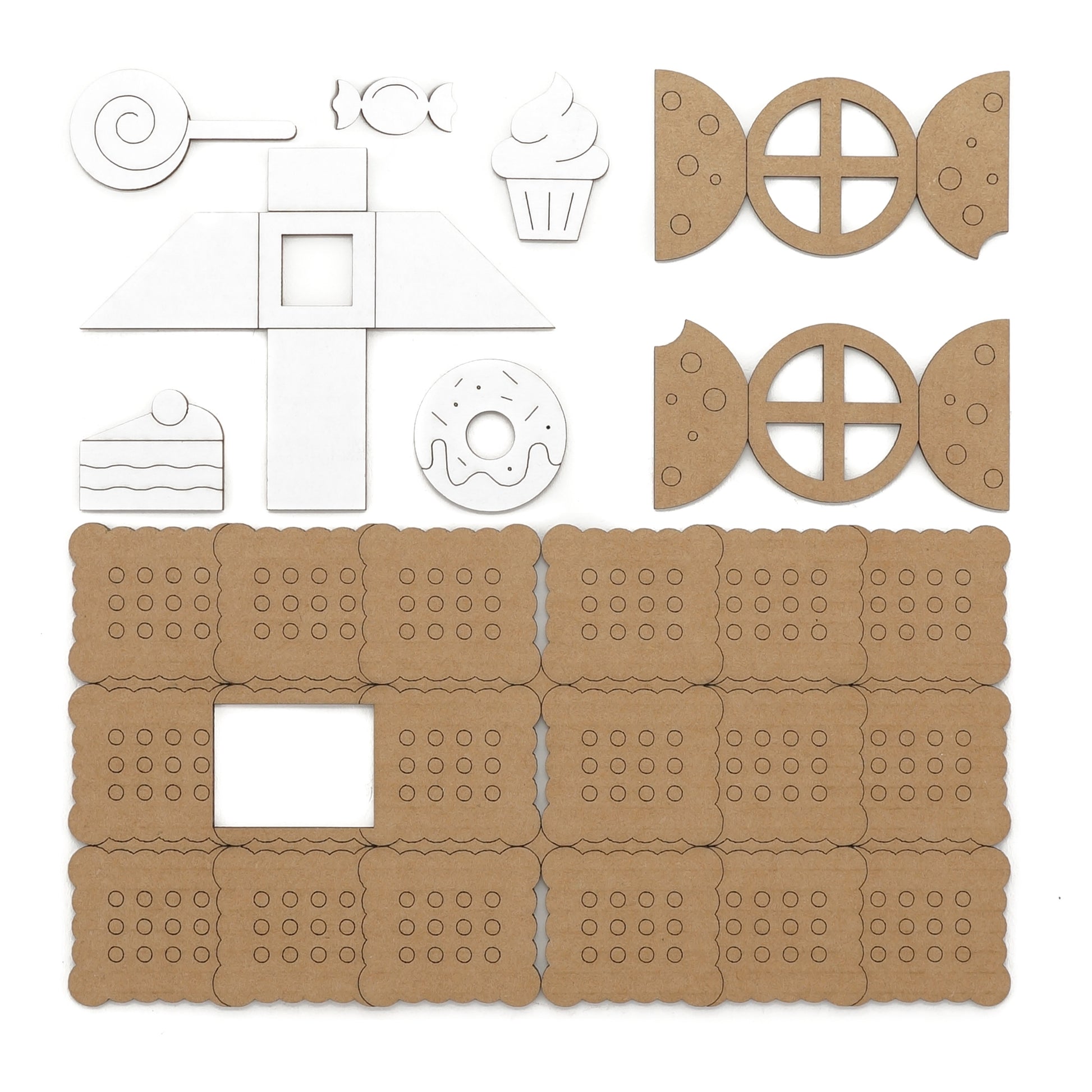 The CLiCQUES Hansel & Gretel set includes accessories for the house: a roof, 2 windows, a beautiful pattern for the door, a white chimney, white sweets you can paint yourself. The accessories are made of cardboard and can be gued to the house.