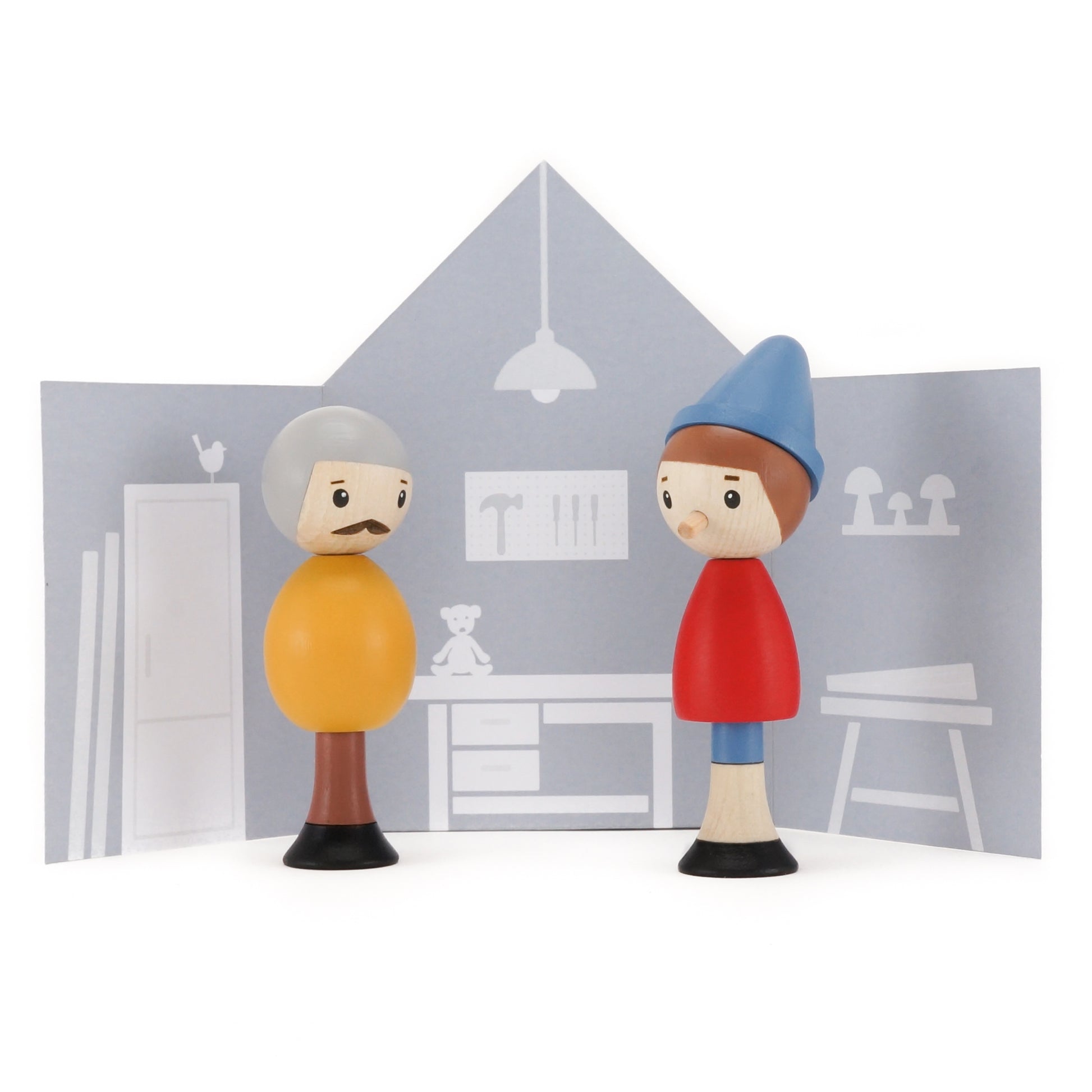 The set includes a matching wallpaper that transforms the house-shaped box into Geppetto´s workshop.